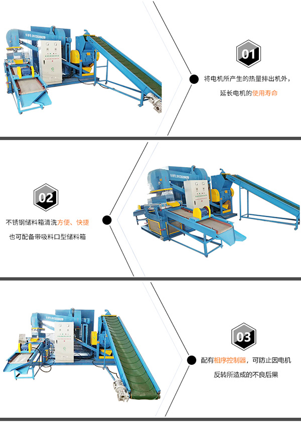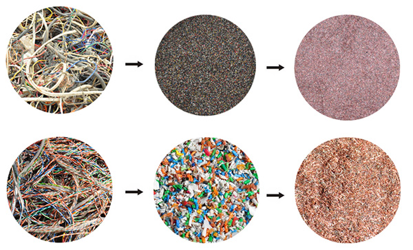 銅米機也叫做銅線粉碎機,銅米機設備適用于插座線、單銅硬線、花線、護套軟線、汽車摩托車電路線、鋁塑線、地埋線、接電線、各種電器線、通訊電話線等。因剝線機不適用的各種雜料電纜線和電線的粉碎分離回收。這些廢線回收來的規(guī)格大小長短不齊,不適宜用剝線機來處理,銅米機處理這些線處理銅鋁材質的分類,像長短粗細不同的可以同時用銅米機來破碎,分選率可達百分之九十八。